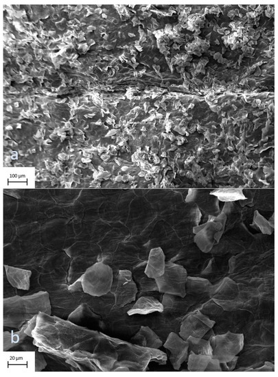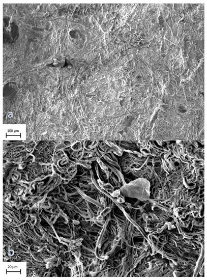 (a,b) Skin allografts on scanning electron microscopy. Profound views of the graft at 177× and 1000× magnification. There are no signs of scaffold decomposition after processing and preparation.