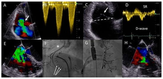 - Guerin, P.; Jalal, Z.; Le Ruz, R.; Cueff, C.; Hascoet, S.; Bouvaist, H.; Ladouceur, M.; Levy, F.; Hugues, N.; Malekzadeh-Milani, S.G.; et al. Percutaneous Edge-To-Edge Repair for Systemic Atrioventricular Valve Regurgitation in Patients with Congenital Heart Disease: The First Descriptive Cohort. J. Am. Heart Assoc. 2022, 1, e025628. [Google Scholar] [CrossRef] [PubMed]