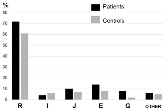 In contrast, in our region, the haplogroup I was rare, representing only 4% and 6% of the control and patient cohort, respectively (p = 0.47). Given its low frequency, subgroups of this haplogroup were not evaluated.
