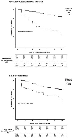 3.4. Predictive Factors of Poor Clinical Outcome after the Transfer