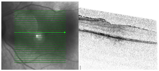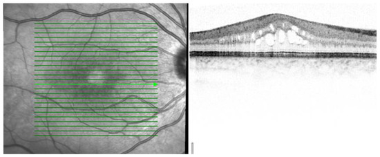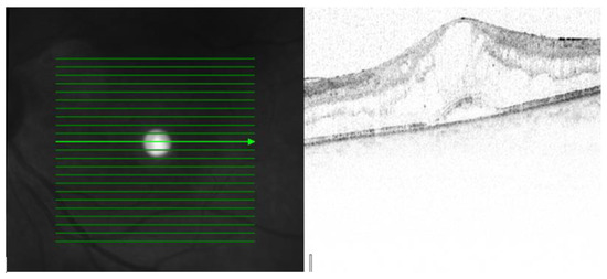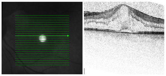 OCT scan parameters were as follows: infrared scan; pattern size: 20° × 20°; 25 sections; 240 µm between B-scans; 512 A-scans.