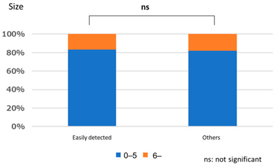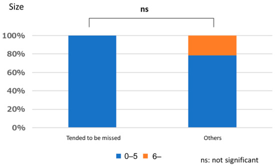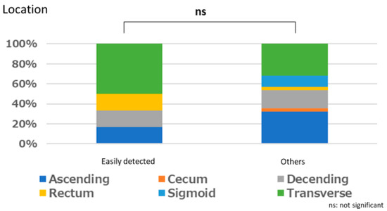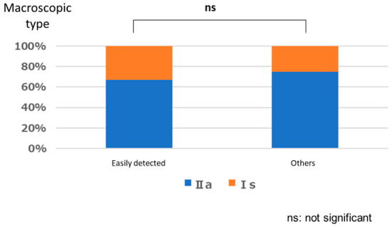 There was no significant relationship between polyps that are easily detected by endoscopists and lesion size (p = 1.000), location (p = 0.667), or macroscopic type (p = 1.000). Similarly, no significant relationships were observed between polyps that tended to be missed and size (p = 0.333), location (p = 0.661), and macroscopic type (p = 0.661) (Figure 3, Figure 4, Figure 5, Figure 6, Figure 7 and Figure 8).