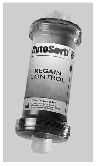 Extracorporeal hemoadsorption has emerged as a promising and innovative therapeutic approach to address this circumstance. Technological advancements have reached a stage where the properties of novel polymers can be harnessed for blood purification therapy. These polymers facilitate the selective and concentration-dependent removal of cytokines and other inflammatory mediators, offering a potential solution for targeted filtration [18,19]. CytoSorb® (CytoSorbents Europe GmbH, Berlin, Germany) is a commercially available cytokine adsober which uses that concept [20]. Excessive levels of inflammatory mediators, including cytokines, interleukins, anaphylatoxins, as well as damage- and pathogen-associated molecular patterns, are irreversibly bound within the polymer through physico-chemical interactions [12].