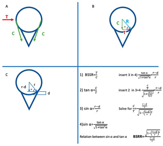 “(A) The ball-and-socket configuration of a glenohumeral joint with depicted translational force (T) and compressive force (C). (B) The compressive force vector (C) and the translational force vector (T) form a right triangle, with the resulting force vector as the hypotenuse (R). (C) An identical right triangle is described by geometrical entities of the ball-and-socket configuration, including the radius (r) and the concavity depth (d) or combinations thereof. Mathematical considerations based on Pythagorean trigonometric identities put the right triangle of the force vectors about the right triangle of the geometrical entities to determine the bony shoulder stability ratio (BSSR), which is the ratio for the maximal translational force (T) against which a shoulder can be stabilized by a given concavity-compression force (C)” Reprinted with permission from ref. [2]. Copyright 2015 Arthroscopy Association of North America.
