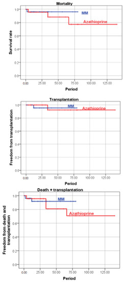 3.3. Comparison of the Safety of MM and Azathioprine Therapy