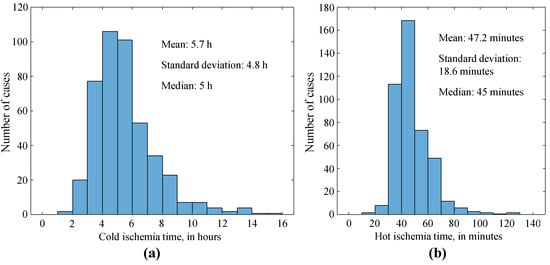 Distribution of cold ischemia (a) and hot ischemia (b) times.