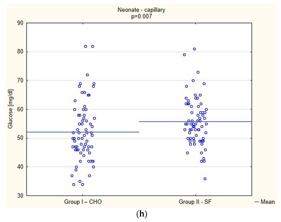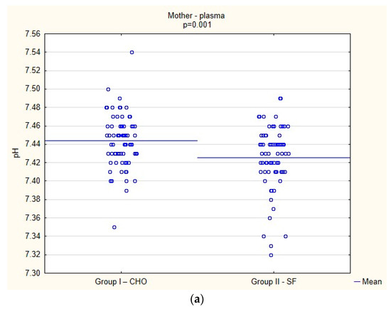 The data regarding the well-being of the newborn were recorded from medical records and biochemical parameters. These data included values obtained from a blood gas from the umbilical cord and as part of routine testing performed on the newborn. Neonatal pH, glucose, and lactate levels were measured in the whole blood (GEM Premier 3500, Werfen, Bedford, MA, USA).