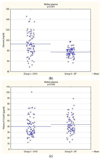 Serum glucose level was evaluated using the enzymatic method (Cobas 8000 analyzer, Roche, Poland). The parameters of pH, lactate, and glucose concentration were determined using a POCT analyzer (GEM Premier 3500, Werfen, Bedford, MA, USA). The concentration of Beta-OH-butyrate was determined by a spectrophotometric method using a ready-made reagent kit (Pointe Scientific Polska, Warszaw, Poland). The concentration of isoprostane was determined by the ELISA method using the 8-isoprostane ELISA Kit (Cayman Chemical, Ann Arbor, MI, USA).