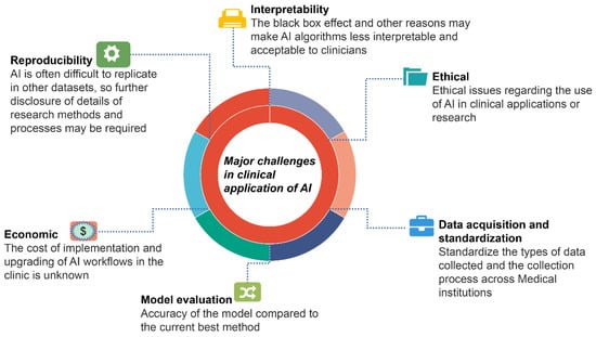 It is challenging to validate and promote the application of external datasets because different research designs, including AI algorithms, observational indicators, and reference data, are inconsistent. Furthermore, some research fails to compare the two models because AI can use large amounts of data to calculate different parameters. In contrast, traditional statistical approaches can only use a limited number of training features. Another issue in the clinical application of AI is the interpretability of the algorithms, which can lead clinicians to doubt and distrust them due to the “black box” effect. The cost of clinically rolling out AI applications and subsequent software updates is currently unknown and may be one of the barriers to AI adoption. What is more, there are currently no guidelines in place to help determine the ethical and legal issues associated with the application of AI.