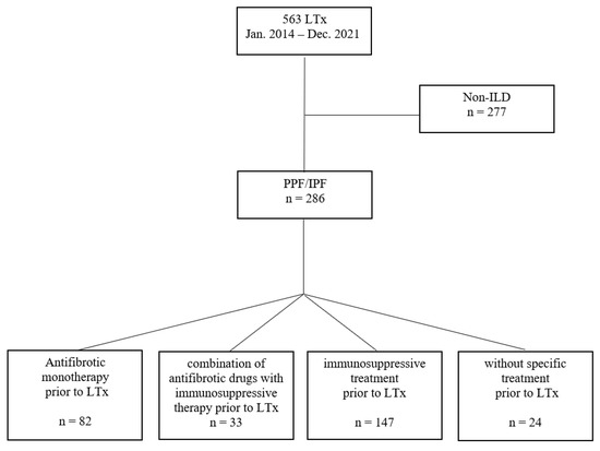 Chicago/Turabian StyleMunker, Dieter, Paola Arnold, Gabriela Leuschner, Michael Irlbeck, Sebastian Michel, Teresa Kauke, Bruno Meiser, Jürgen Behr, Nikolaus Kneidinger, and Tobias Veit. 2023. "Impact of ILD-Specific Therapies on Perioperative Course in Patients with Progressive Interstitial Lung Disease Undergoing Lung Transplantation" Journal of Clinical Medicine 12, no. 15: 4996. https://doi.org/10.3390/jcm12154996