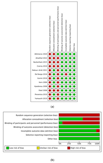 (a) Risk of Bias in Non-Randomized Studies of Interventions. (b) Risk of Bias in Non-Randomized Studies of Interventions tool with summary plot. References: [3,6,7,11,12,13,14,15,16,17,18,19].