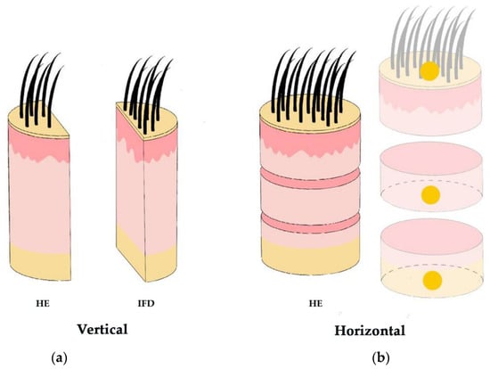 - Elston, D.M.; Ferringer, T.; Dalton, S.; Fillman, E.; Tyler, W. A Comparison of Vertical versus Transverse Sections in the Evaluation of Alopecia Biopsy Specimens. J. Am. Acad. Dermatol. 2005, 53, 267–272. [Google Scholar] [CrossRef]