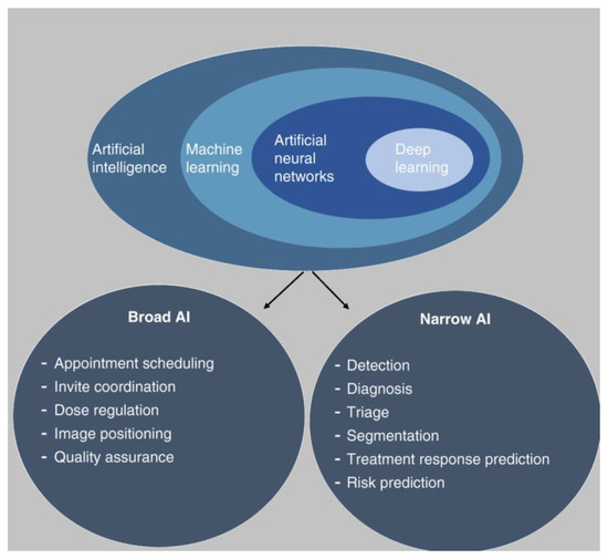- Hosny, A.; Parmar, C.; Quackenbush, J.; Schwartz, L.H.; Aerts, H.J. Artificial intelligence in radiology. Nat. Rev. Cancer 2018, 18, 500–510. [Google Scholar] [CrossRef]