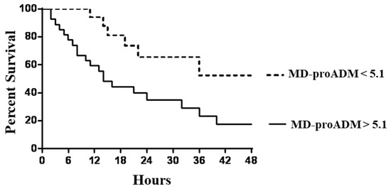 Similar data were described by Elke, revealing that the initial use of MR-proADM within the first 24 h after sepsis diagnosis resulted in the strongest association with short-term, mid-term, and long-term mortality compared to all other biomarkers or clinical scores [8].