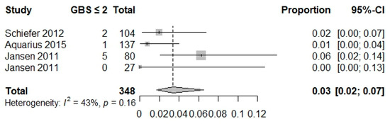 Forest plot composite outcome GBS ≤ 2 [19,48,52].