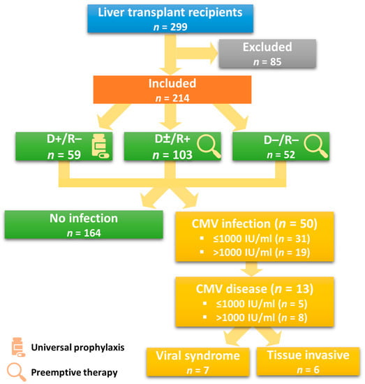 - Desai, A.N.; Malani, P.N. Preventing Cytomegalovirus Infection after Liver Transplant: An Evolving Approach. JAMA 2020, 323, 1388. [Google Scholar] [CrossRef]