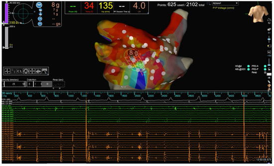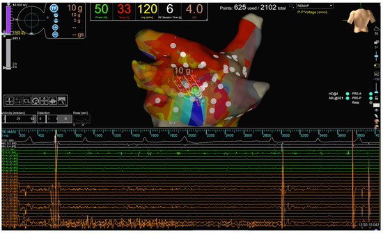 - Winkle, R.A.; Hardwin Mead, R.; Engel, G.; Kong, M.H.; Salcedo, J.; Brodt, C.R.; Patrawala, R.A. High-power, short-duration atrial fibrillation using contact force sensing catheters: Outcomes and predictors of success including posterior wall isolation. Heart Rhythm. 2020, 171, 223–1231. [Google Scholar]