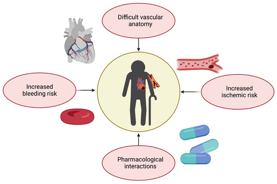 Challenges in therapeutic management of coronary artery disease in older adults (created with Biorender.com, accessed on 30 June 2023).