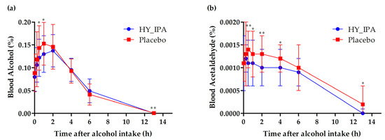 Jung, S.H.; Lee, Y.H.; Lee, E.K.; Park, S.-D.; Shim, J.-J.; Lee, J.-L.; Yoo, H.H. Effects of Plant-Based Extract Mixture on Alcohol Metabolism and Hangover Improvement in Humans: A Randomized, Double-Blind, Paralleled, Placebo-Controlled Clinical Trial. J. Clin. Med. 2023, 12, 5244. https://doi.org/10.3390/jcm12165244
