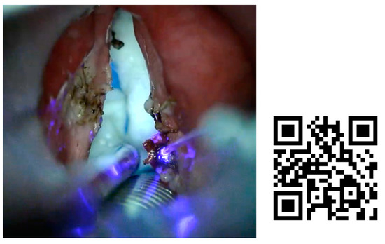 The irruption of photoangiolytic lasers in otorhinolaryngological practice has mainly improved the possibility of using the laser to treat laryngeal lesions under local anesthesia, moving these procedures from the operating room to the office [12,13]. On the other hand, the angiolytic characteristics of the blue laser and its characteristic absorption by the tissues result in a reduction in mucosal lesions [14,15,16,17]. Thanks to this, it can be used to perform tissue resections, greatly limiting the affected neighboring tissue, even when performed with the patient awake under local anesthesia [3].