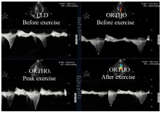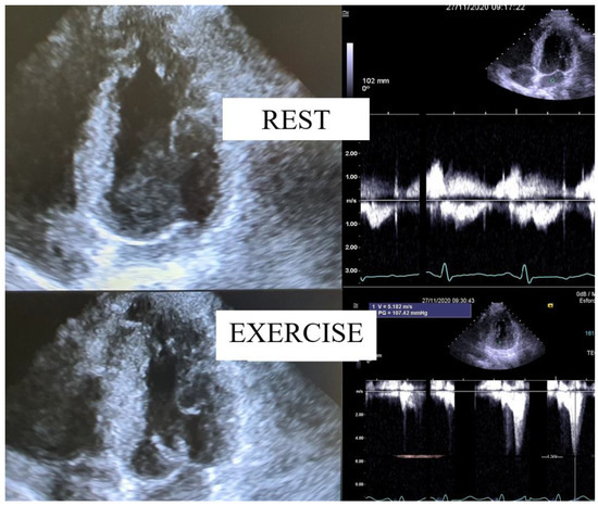 27. Reant, P.; Dufour, M.; Peyrou, J.; Reynaud, A.; Rooryck, C.; Dijos, M.; Vincent, C.; Cornolle, C.; Roudaut, R.; Lafitte, S. Upright treadmill vs. semi-supine bicycle exercise echocardiography to provoke obstruction in symptomatic hypertrophic cardiomyopathy: A pilot study. Eur. Heart J. Cardiovasc. Imaging 2018, 19, 31–38. [Google Scholar] [CrossRef]