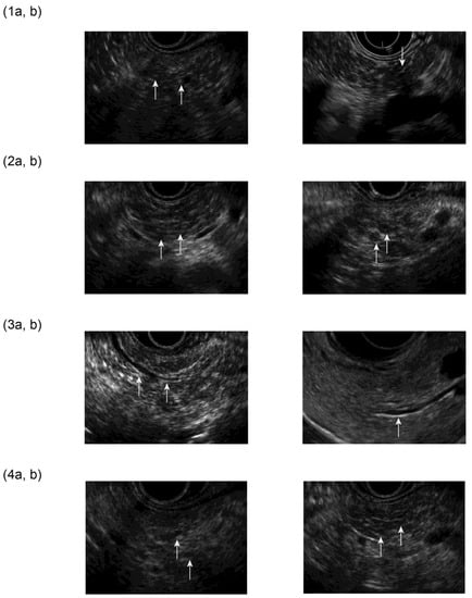 - Yamamiya, A.; Irisawa, A.; Kashima, K.; Kunogi, Y.; Nagashima, K.; Minaguchi, T.; Izawa, N.; Yamabe, A.; Hoshi, K.; Tominaga, K.; et al. Interobserver Reliability of Endoscopic Ultrasonography: Literature Review. Diagnostics 2020, 10, 953. [Google Scholar] [CrossRef]