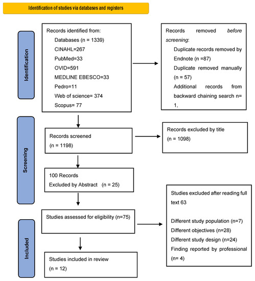 This qualitative SR will be reported and presented in a Preferred Reporting Items for Systematic Reviews and Meta-analyses extension for SR (PRISMA-ScR) flow diagram [12,13]. To start, a preliminary search for existing or ongoing SRs was conducted through the Cochrane Library, Joanna Briggs Institute (JBI), PROSPERO, and grey literature. The search strategy included unpublished and published research (restricted to English language). An initial limited search in MEDLINE, Cumulative Index of Nursing and Allied Health Literature (CINHAL), the Cochrane Database of Systematic Reviews, Cochrane Library, and the JBI Evidence Synthesis was undertaken to identify any possible keywords, synonyms, and Mesh terms related to this review topic. The text words contained in the titles and abstracts of relevant articles, and the index terms used to describe the articles, were used to develop a full search strategy in MEDLINE via Ovid, Embase, CINHAL, Pedro, and PubMed Sources for unpublished studies, and the grey literature to be searched were derived from Scopus, Web of Science, and Google Scholar.