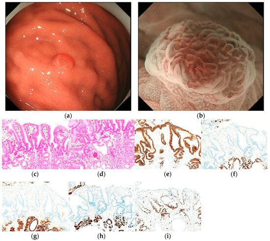 - Fukuyama, C.; Shibagaki, K.; Mikami, H.; Izumi, D.; Yamashita, N.; Mishiro, T.; Oshima, N.; Ishimura, N.; Sato, S.; Ishihara, S.; et al. Multiple Foveolar-type Adenomas and a Foveolar Hyperplasia in a Patient Not Infected with Helicobacter pylori, Report of a Case. Stomach Intest. 2019, 54, 265–272. [Google Scholar]