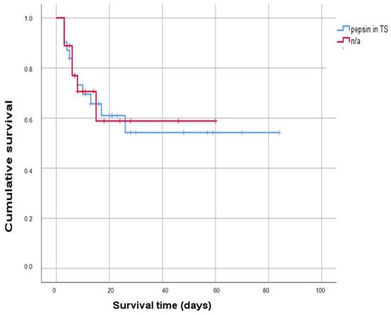 Survival in cases in dependency on the presence of pepsin in tracheal secretion. Abbreviations: n/a—not any.