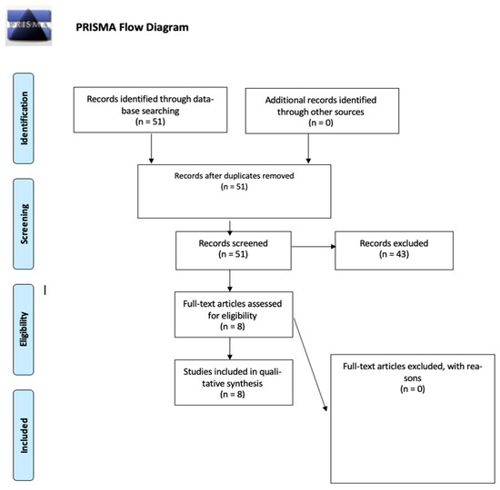 Following the review of titles, abstracts, and duplicates, 43 articles were excluded, leaving a total of eight articles for analysis (Figure 1). Data were extracted from each article, encompassing the number of patients, imaging techniques employed, and final results. A narrative synthesis of the findings was conducted to summarize the utility of FDG-PET in diagnosing and monitoring the treatment of HS. To our knowledge, no other radiotracers have been utilized in HS analyses.