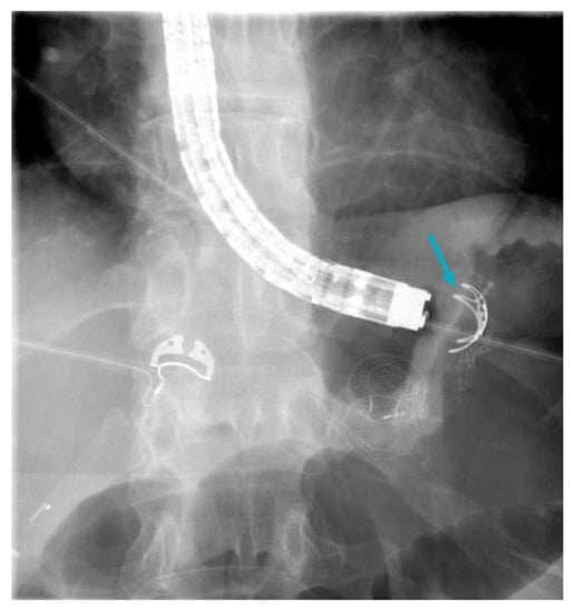 - Uchima, H.; Abu-Suboh, M.; Mata, A.; Cruz, M.; Espinos, J. Lumen-apposing metal stent for the treatment of refractory gastrojejunal anastomotic stricture after laparoscopic gastric bypass. Gastrointest. Endosc. 2016, 83, 251. [Google Scholar] [CrossRef] [PubMed]