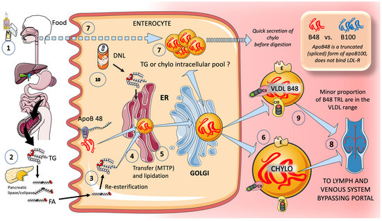 3.1.2. Exogenous Routes: In the Postprandial Period, Enterocytes Produce Chylomicrons