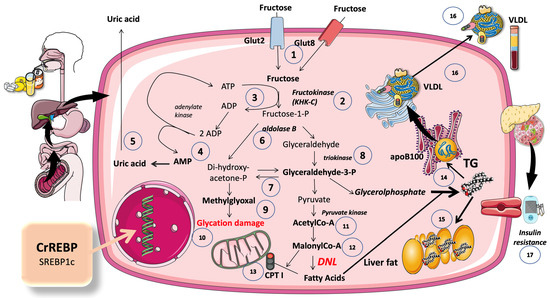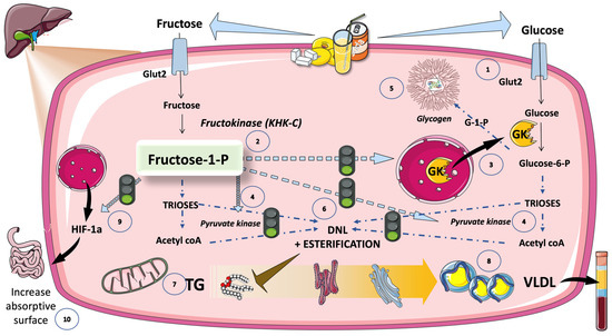 - Herman, M.A.; Birnbaum, M.J. Molecular Aspects of Fructose Metabolism and Metabolic Disease. Cell Metab. 2021, 33, 2329–2354. [Google Scholar] [CrossRef] [PubMed]