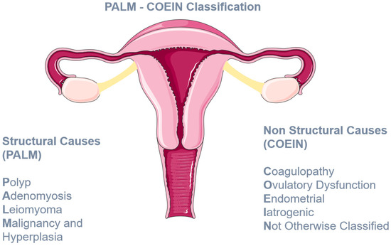 - Munro, M.G.; Critchley, H.O.; Broder, M.S.; Fraser, I.S.; for the FIGO Working Group on Menstrual Disorders. FIGO classification system (PALM-COEIN) for causes of abnormal uterine bleeding in nongravid women of reproductive age. Int. J. Gynecol. Obstet. 2011, 113, 3–13. [Google Scholar] [CrossRef]