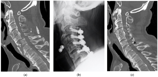 - Vaccaro, A.R.; Hulbert, R.J.; Patel, A.A.; Fisher, C.; Dvorak, M.; Lehman, R.A., Jr.; Anderson, P.; Harrop, J.; Oner, F.C.; Arnold, P.; et al. The subaxial cervical spine injury classification system: A novel approach to recognize the importance of morphology, neurology, and integrity of the disco-ligamentous complex. Spine (Phila Pa 1976) 2007, 32, 2365–2374. [Google Scholar] [CrossRef]
