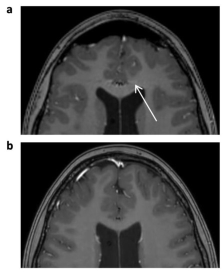 - Chaskis, C.; Neyns, B.; Michotte, A.; De Ridder, M.; Everaert, H. Pseudoprogression after radiotherapy with concurrent temozolomide for high-grade glioma: Clinical observations and working recommendations. Surg. Neurol. 2009, 72, 423–428. [Google Scholar] [CrossRef]