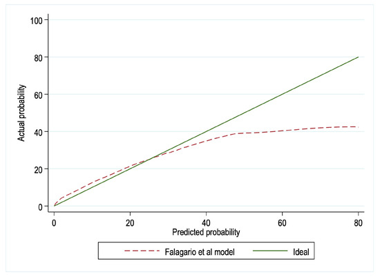 We found that model-derived probabilities above 40% underestimated the actual probability of csPCa on SBx. On the contrary, the model’s calibration was excellent for probabilities below 40% (Figure 2). Consequently, recalibration was not deemed necessary, since the model’s primary clinical utility lies in the lowest range of probabilities. Within this range, clinicians may face uncertainty when deciding whether to proceed with SBx.