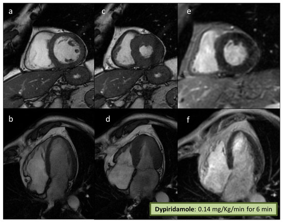 - Patel, A.R.; Salerno, M.; Kwong, R.Y.; Singh, A.; Heydari, B.; Kramer, C.M. Stress Cardiac Magnetic Resonance Myocardial Perfusion Imaging: JACC Review Topic of the Week. J. Am. Coll. Cardiol. 2021, 78, 1655–1668. [Google Scholar] [CrossRef] [PubMed]