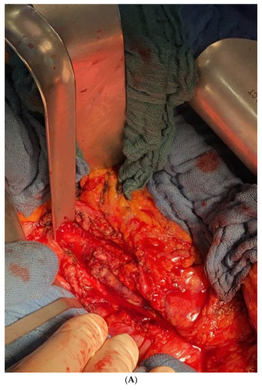 Infections of the aorto-iliac bifurcation—especially fungal infections and those involving arteriovenous and iliac-ureteric (IUF) and iliac-duodenal (IDF) fistulas—are rare but very challenging surgical problems to address. Aorto-iliac infection has a mortality rate between 9% and 75% and associated morbidity can include amputation (up to 30%) depending on the severity of the infection and type of treatment [19,20,21]. Those that occur after previous aortic surgery are often more difficult to treat and have a higher mortality rate due to the presence of scar tissue from the previous surgery. Reinfection in the aortoiliac arteries can cause graft occlusion, sepsis, limb ischemia, internal organ ischemia, sepsis, and aortic rupture.