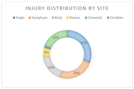 - Morris, C.; Bebeau, N.P.; Brockhoff, H.; Tandon, R.; Tiwana, P. Mandibular Fractures: An Analysis of the Epidemiology and Patterns of Injury in 4,143 Fractures. J. Oral Maxillofac. Surg. 2015, 73, 951.e1–951.e12. [Google Scholar] [CrossRef]