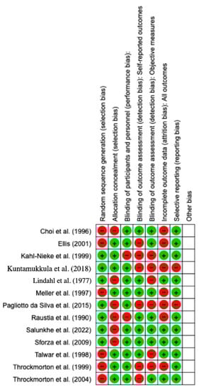 | 12-Meller et al. (1997) [58] | Retrospective study | 9 adult men | Denmark | Unilateral | Evaluated muscle contractions during chewing before and after treatment. | Significant increase in muscle contractions on impaired joint side during chewing after treatment. |