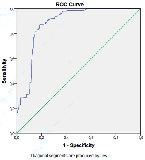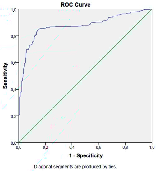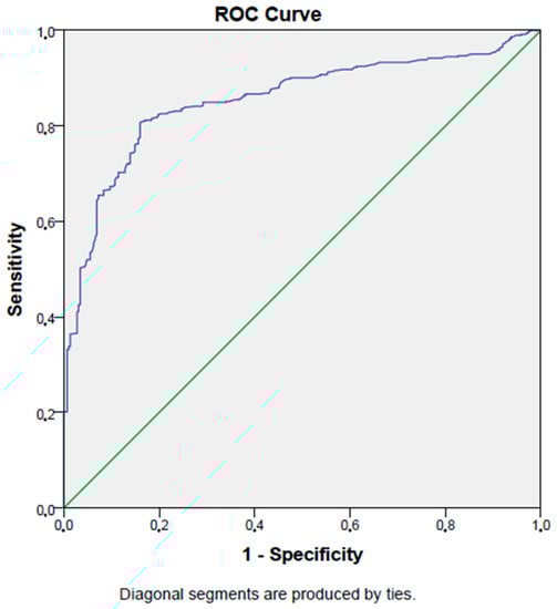 In ROC analysis, a PNI level lower than 60.5% had an 87% sensitivity and an 81% specificity in selecting patients with type 2 diabetes mellitus (AUC:0.88, p < 0.001, 95% CI: 0.86–0.90). Figure 1 shows the ROC curve of the PNI in detecting type 2 diabetes mellitus patients.