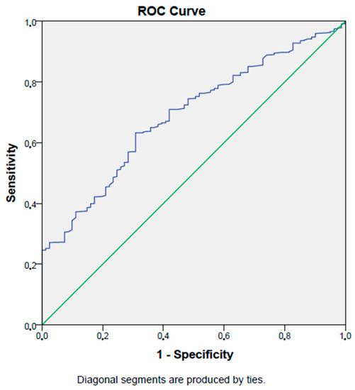 In the ROC analysis, a PNI level lower than 47.7% has a 63% sensitivity and a 69% specificity in detecting diabetic retinopathy in type 2 diabetes mellitus patients (AUC: 0.69, p < 0.001, 95% CI: 0.64–0.74). Figure 4 shows the ROC curve of the PNI in detecting diabetic retinopathy in type 2 diabetes mellitus patients.