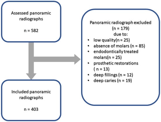 Flow chart of the selection of panoramic radiographs from the contemporary population.
