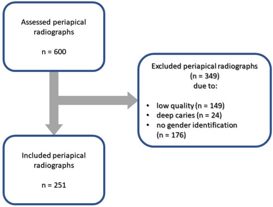 Flow chart of the selection of periapical radiographs from the historical populations.
