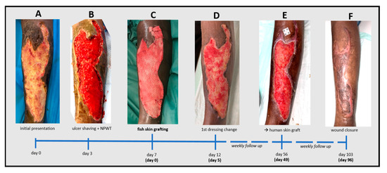- Ciprandi, G.; Kjartansson, H.; Grussu, F.; Baldursson, B.T.; Frattaroli, J.; Urbani, U.; Zama, M. Use of acellular intact fish skin grafts in treating acute paediatric wounds during the COVID-19 pandemic: A case series. J. Wound Care 2022, 31, 824–831. [Google Scholar] [CrossRef] [PubMed]