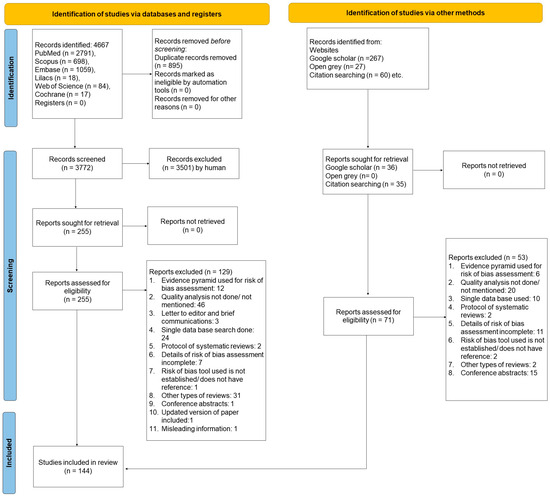 - Whiting, P.; Savović, J.; Higgins, J.P.; Caldwell, D.M.; Reeves, B.C.; Shea, B.; Davies, P.; Kleijnen, J.; Churchill, R. ROBIS: A new tool to assess risk of bias in systematic reviews was developed. J. Clin. Epidemiol. 2016, 69, 225–234. [Google Scholar] [CrossRef] [PubMed]