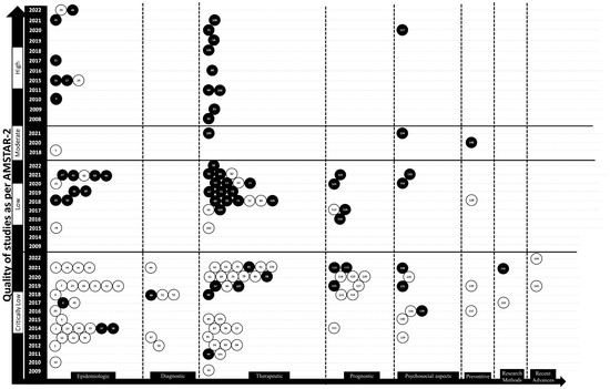 - Shea, B.J.; Reeves, B.C.; Wells, G.; Thuku, M.; Hamel, C.; Moran, J.; Moher, D.; Tugwell, P.; Welch, V.; Kristjansson, E.; et al. AMSTAR 2: A critical appraisal tool for systematic reviews that include randomised or non-randomised studies of healthcare interventions, or both. BMJ 2017, 358, j4008. [Google Scholar] [CrossRef] [PubMed]