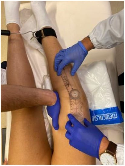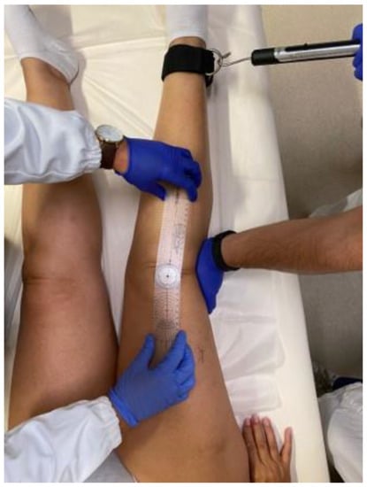 - Watkins, M.A.; Riddle, D.L.; Lamb, R.L.; Personius, W.J. Reliability of goniometric measurements and visual estimates of knee range of motion obtained in a clinical setting. Phys. Ther. 1991, 71, 90–96; discussion 96–97. [Google Scholar] [CrossRef] [PubMed]