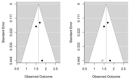 Initial odds ratio funnel plot and after trim-and-fill adjustment.